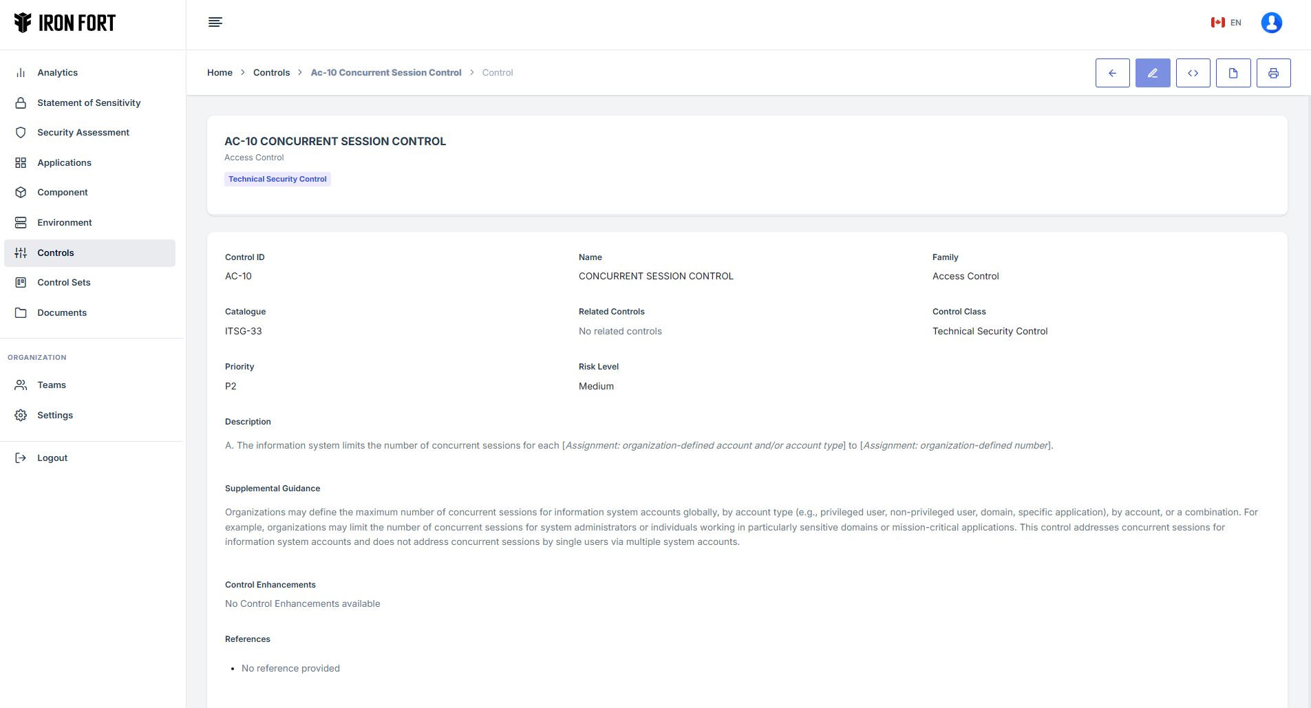 Understand how to review the security controls catalogue in Iron Fort to ensure comprehensive compliance.