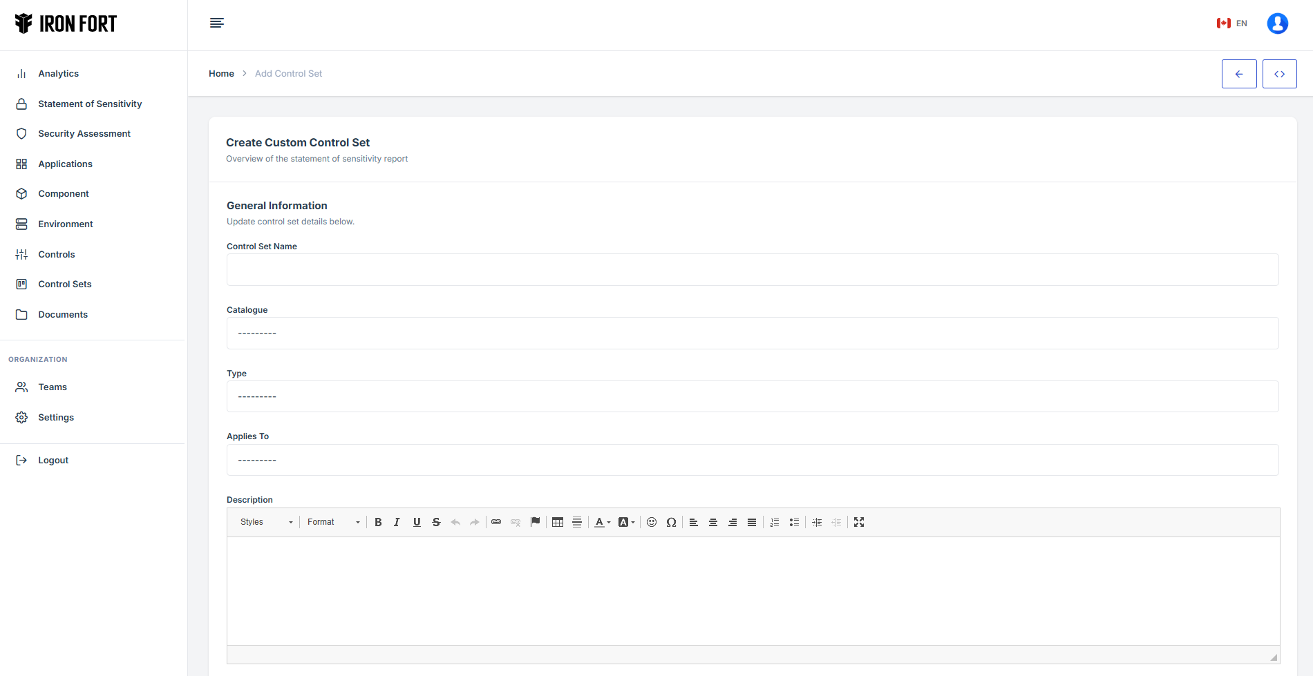 Step-by-step guide to creating a new custom control set in Iron Fort tailored to your specific compliance needs.