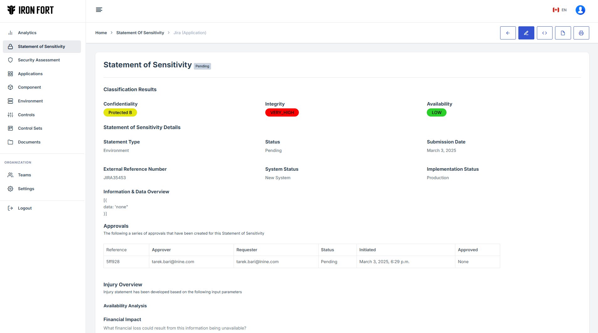 Follow these instructions to create a new Statement of Sensitivity in Iron Fort and ensure your compliance requirements are met.